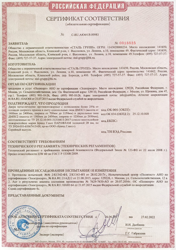 Компания «СТАЛЬ-ГРУПП» выпускает противопожарные двери с остеклением 25 и более процентов. Перед оформлением заказа воспользуйтесь услугами замерщика. Мастер снимет мерки, проконсультирует по продукции, продемонстрирует каталог и подскажет, какую модель лучше выбрать. Дополнительную информацию можно получить по телефону.